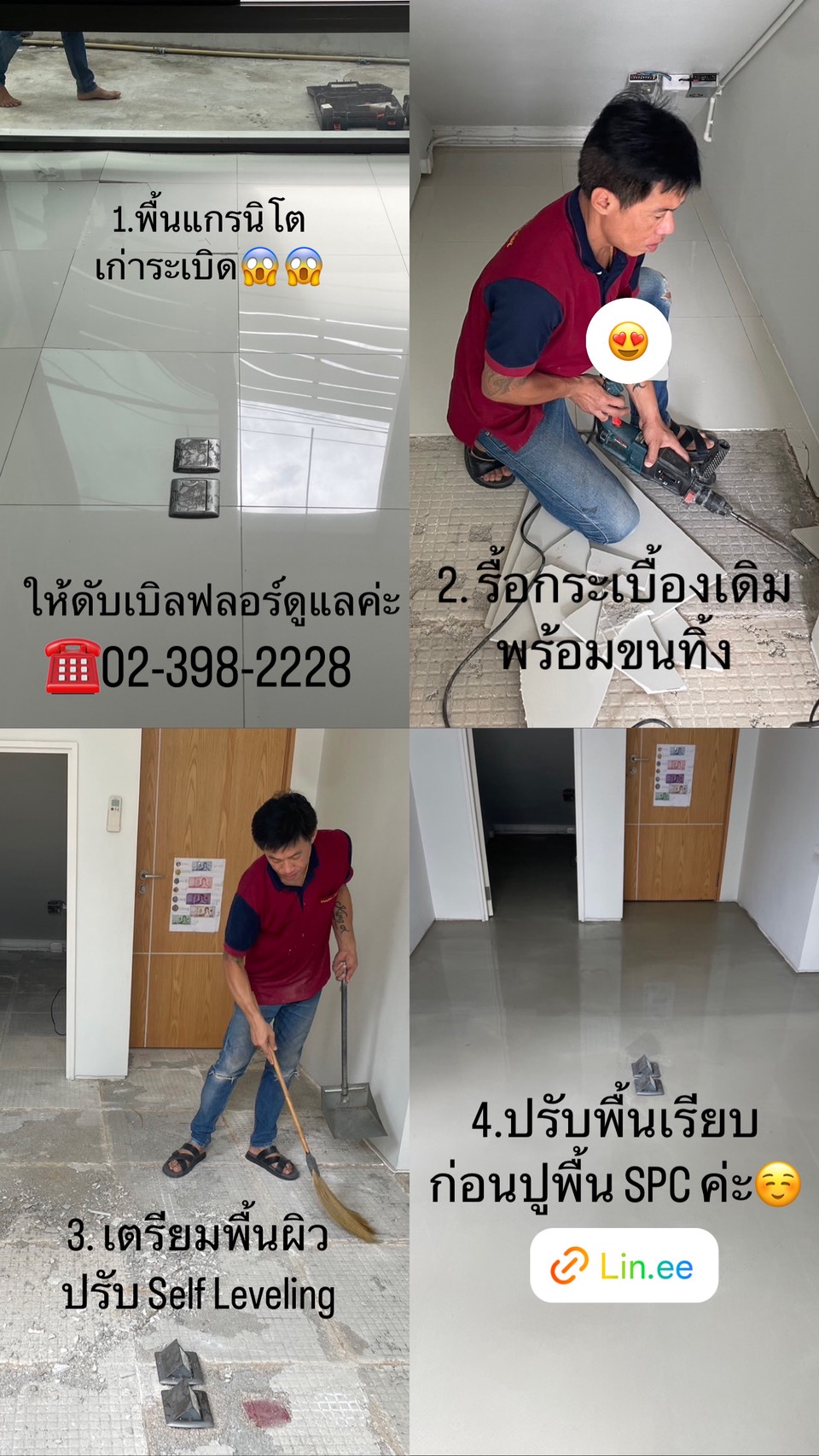 ที่ Double Floor เรามีบริการ “One-Stop Service” ทั้งงานปรับพื้น Self Leveling และงานติดตั้งพื้น SPC ดำเนินการโดยช่างชุดเดียวกัน เพื่อให้ความรับผิดชอบไม่ขาดตอน จบงานเนี๊ยบ รับประกันคุณภาพ