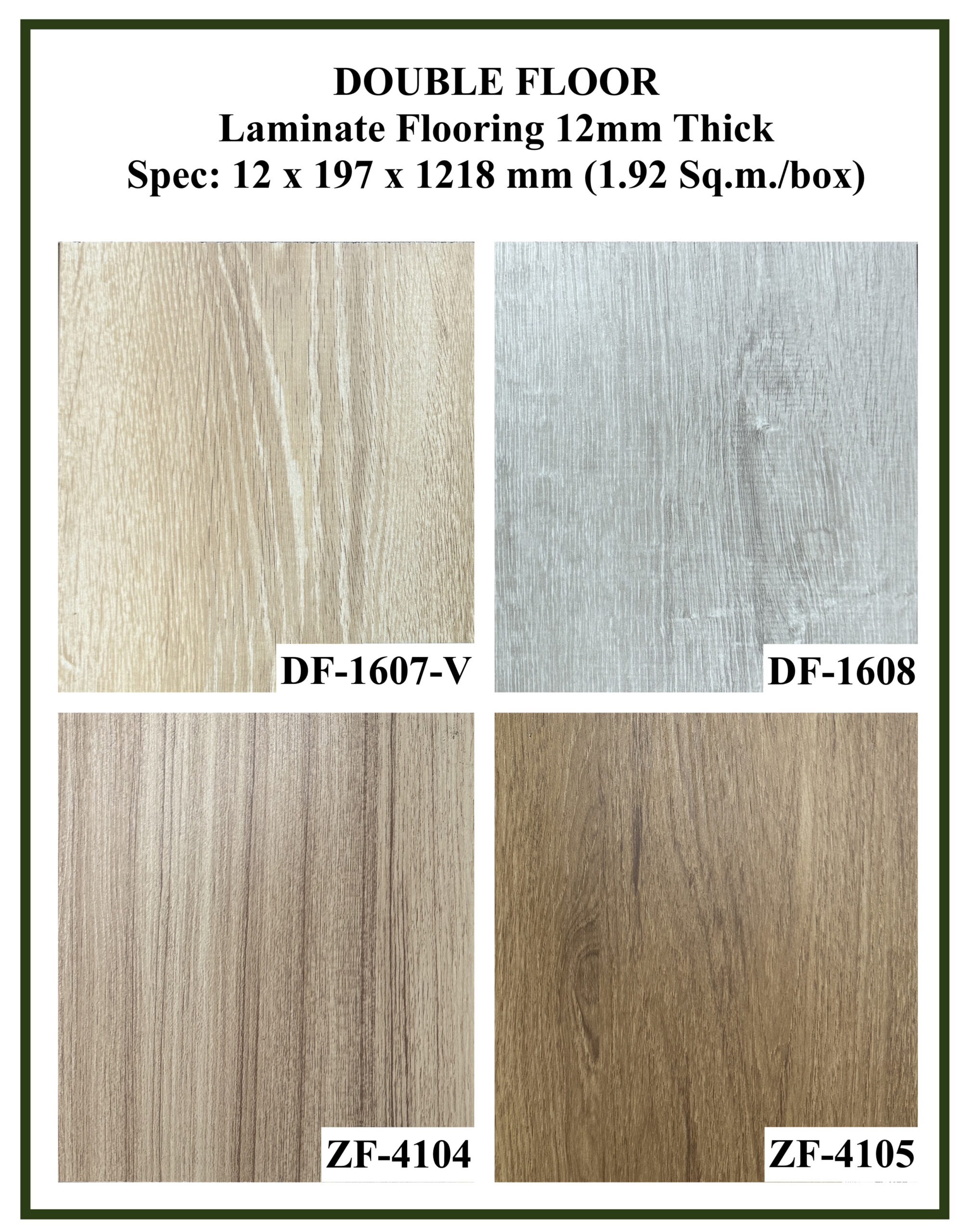 - พื้นไม้ลามิเนต ความหนา 12 มิลลิเมตร และ แบบร่องวี กว้าง 8 นิ้ว ยาว 1.20 เมตร